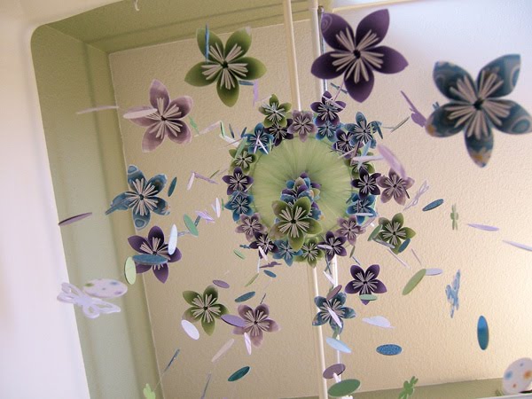 Honestly, this mobile is my FAVORITE!! I love the teal glitter paper, and the metallic shiny teal paper! It was just so sparkly hanging up in my living room while I made it! The colors flow so well, I just LOVE it!