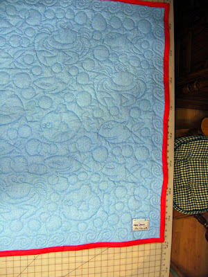 You can kinda see the quilting stitches on the front of the quilt... see the waves along the border?